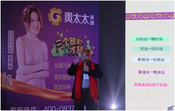 公司董事長徐學文首先致歡迎詞,與大家分享了貴太太一路走來取得的輝煌成績,并強調(diào)貴太太一直信奉:依靠卓越的品牌與優(yōu)質(zhì)的服務立足市場,今后,將更加努力用一流的管理,一流的產(chǎn)品,打造中國茶油第一品牌,用一流的服務,回報廣大經(jīng)銷商朋友的支持與厚愛。