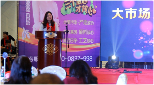 來自益陽桃江的經(jīng)銷商代表胡臘英與江西萍鄉(xiāng)的鄧龍英分別上臺分享交流成功經(jīng)驗,更表明了喜愛貴太太,認可貴太太的態(tài)度。