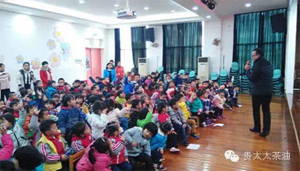 聶總給小朋友們細(xì)致地講解了“地溝油”、“路邊攤老油”、“土榨茶油”的來源及危害,詳細(xì)介紹了鑒別和區(qū)分不健康油的實(shí)用方法,并告訴小朋友們拒絕“地溝油”、“路邊攤小零食”等。接著,聶總展示了如何選用健康食用油、純茶油可以做哪些美食、茶油有美容護(hù)膚等其他功效等。